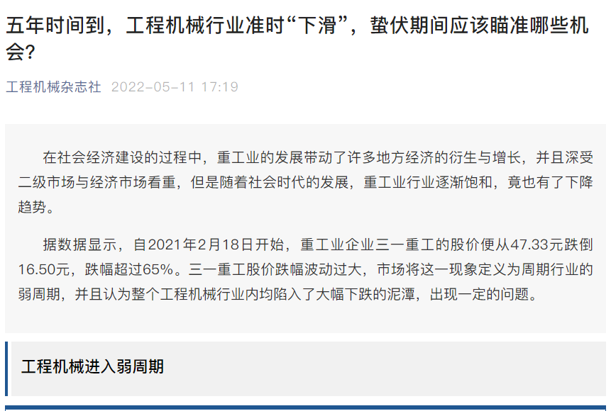 銷量同比-47.3%,高基數(shù)下符合預期"近期,中國工程機械工業(yè)協(xié)會發(fā)布數(shù)據(jù)2022年4月中國挖掘機械銷量(含出口)24534臺,同比-47.3%,基本符合此前CME觀測預期。2022年4月納入統(tǒng)計的26家主機制造企業(yè),共計銷售各類…......