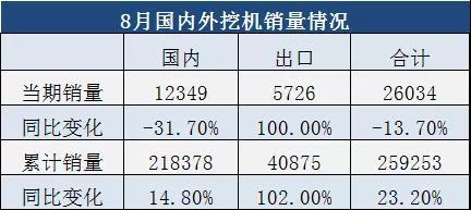 8月挖機銷量數據解讀