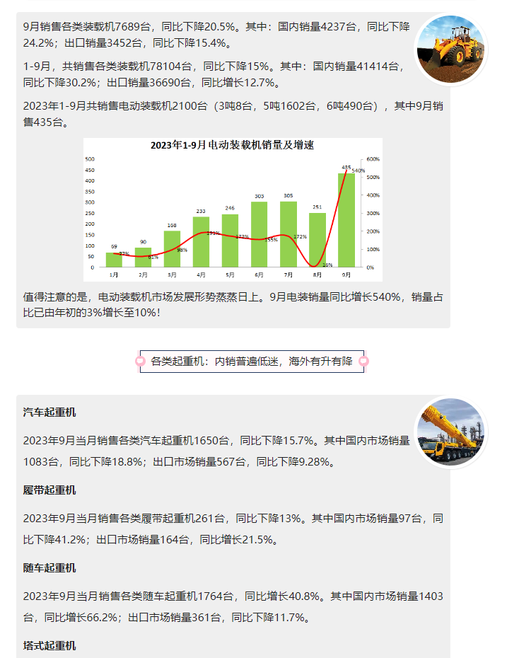 上一篇:2023年9月挖掘機國內(nèi)市場銷量6263臺,同比下降40.5%